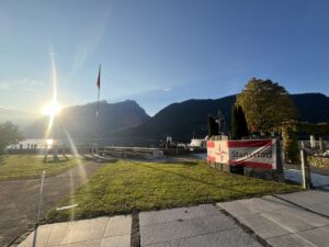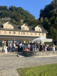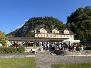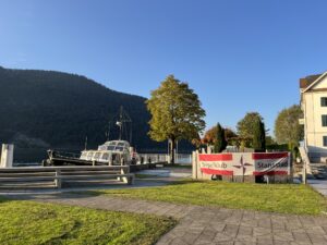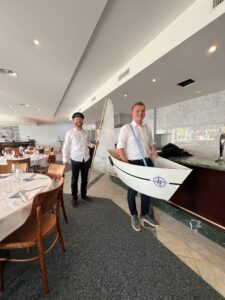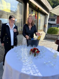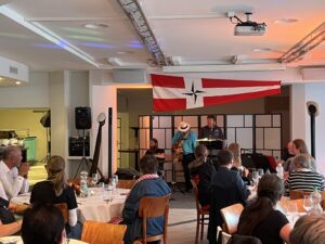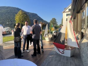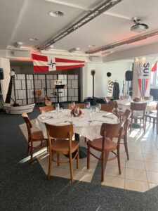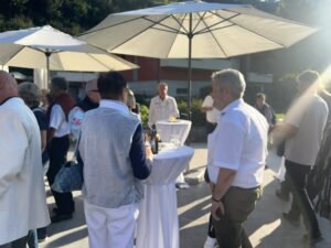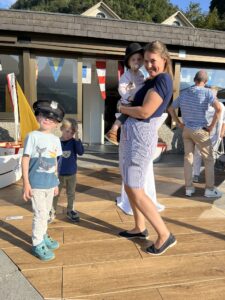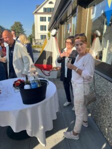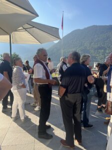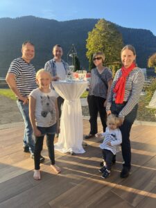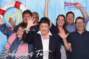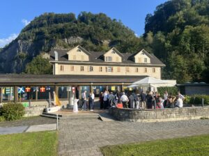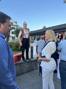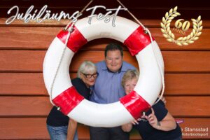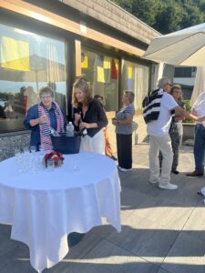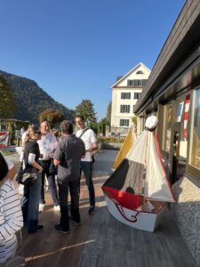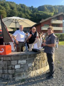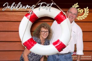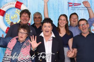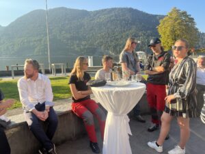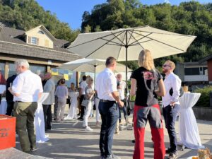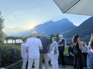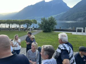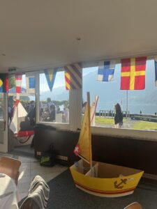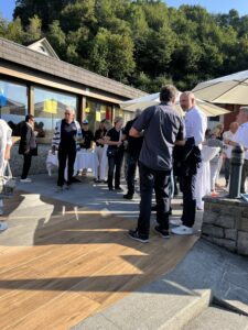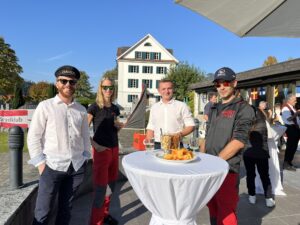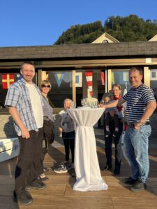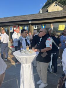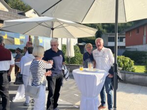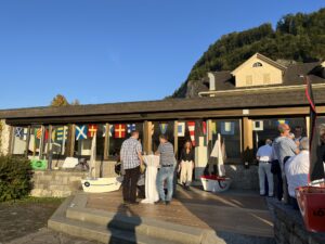 Auch Petrus meinte es gut und so konnten wir den Apéro am Ufer des Alpnachersees auf der sonnigen Terrasse einnehmen. Das Motto war „maritim“ und so fanden sich rund 80 Personen im maritimen Look ein – die einen im gestreiften Shirt, die anderen kamen mit ihrem Boot.