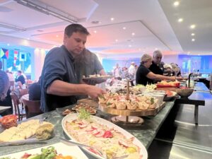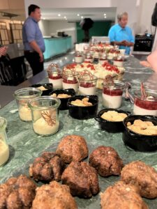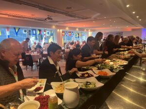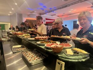 Als alle einen Platz an den runden Tischen gefunden haben, eröffnet unser Präsident Thomas den Abend mit ein paar Anekdoten zur Geschichte des SKS. Im Anschluss wurde das Vorspeisenbuffet eröffnet und jeder Wunsch wurde erfüllt – vom Salat über Roastbeef, Rindstatar, Vitello Tonnata, Tartelletes oder Pulposalat und vieles mehr konnte jeder seine Lust stillen.