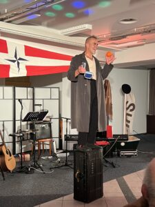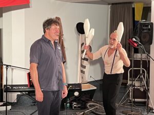 Nach dem Hauptgang wurden wir in die Welt des Jonglierens und Einradfahrens geholt – Nicolas brachte mit seinen Kunststücken so einige SKSler und auch den Swiss Sailing Präsidenten ins Schwitzen.