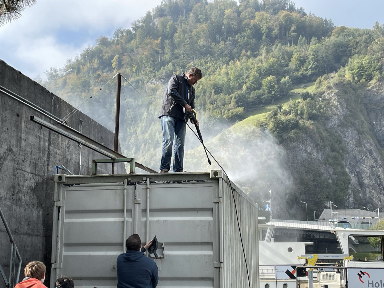Am 16. Oktober 2021 trafen sich die Junioren zum letzten Mal. Der Container wurde auf den Kopf gestellt und herausgeputzt, alles Material geprüft und sortiert. Dank dem schweren Geschütz machte auch das Putzen der Boote Spass!