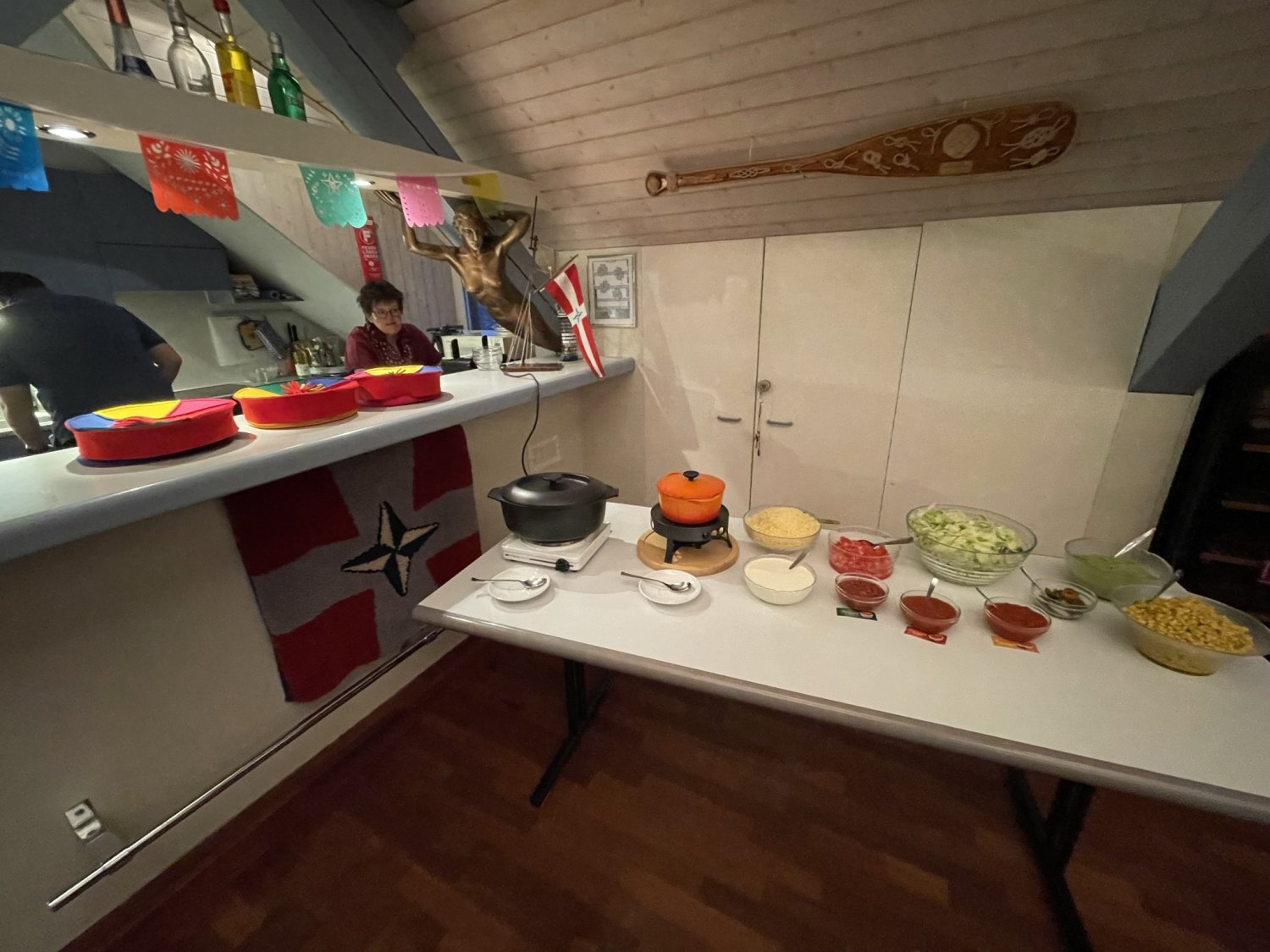 Nach den mit Käse überbackenen Nachos und der selbst gemachten Guacamole konnte jeder seine Fajitas am reich bedeckten Buffet selbst zusammenstellen und die Schärfe nach seinem eigenen Geschmack bestimmen.