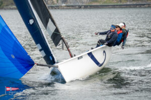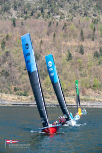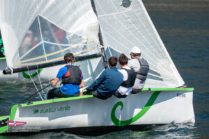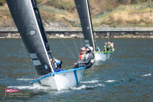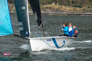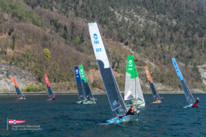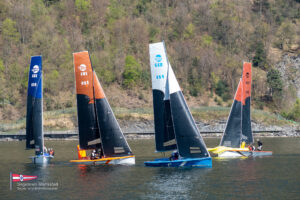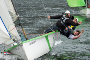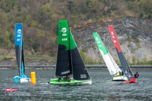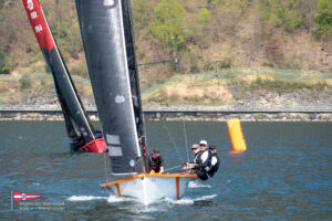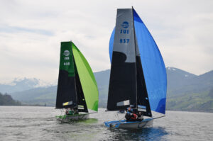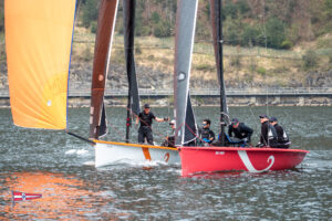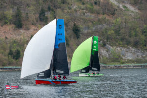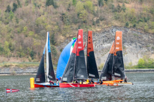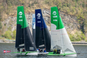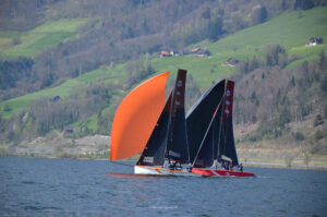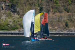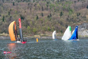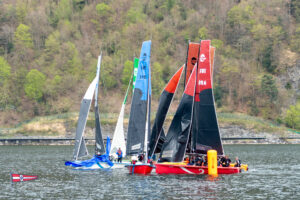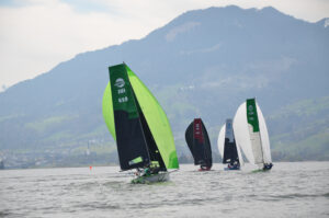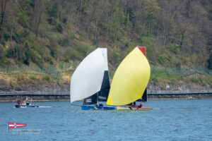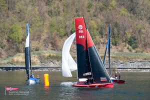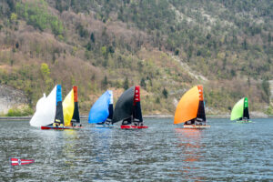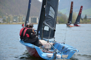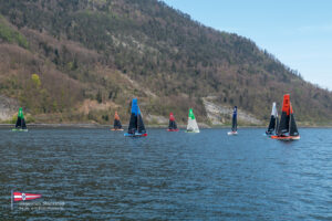 Die restlichen Crews reisten grösstenteils am Freitagabend an, reinigten die Boote gemäss den behördlichen Vorschriften und wasserten ein. Der Samstag startete früh mit der Registrierung und dem Skippermeeting – ab 11:00 Uhr hieß es dann „Start“ bei guten Segelbedingungen! Spannende Wettfahrten, sportlicher Ehrgeiz und perfektes Wetter sorgten für Begeisterung auf und neben dem Wasser. Das Tagesmaximum von vier Läufen konnte bei beständigem Wind gesegelt werden – als die Boote zurück in den Hafen geschickt wurden, liess auch der Wind gleich wieder nach.