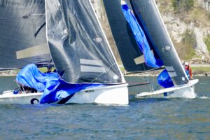 Nachdem am Samstag fünf kurze Läufe gestartet werden konnten, blies die Bise am Sonntag etwas stärker. Dies führte leider zu einem etwas chaotischeren Trainingstag als erhofft – nahmen die einen Crews unfreiwillige Bäder im kalten Alpnachersee, andere Crews kamen sich leider etwas zu nahe an der Startlinie.