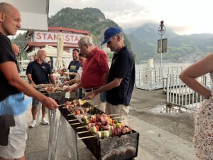 Im Anschluss wurde dann am Sommerfest beim Spiesschen grillen auf dem Kanalgrill über den Tag resümiert. Mit der Livemusik von Fernando war auch für die Unterhaltung gesorgt. Selbst das heftige Gewitter am Abend hielt die Gäste nicht davon ab, bis das Zusammensein zu geniessen.