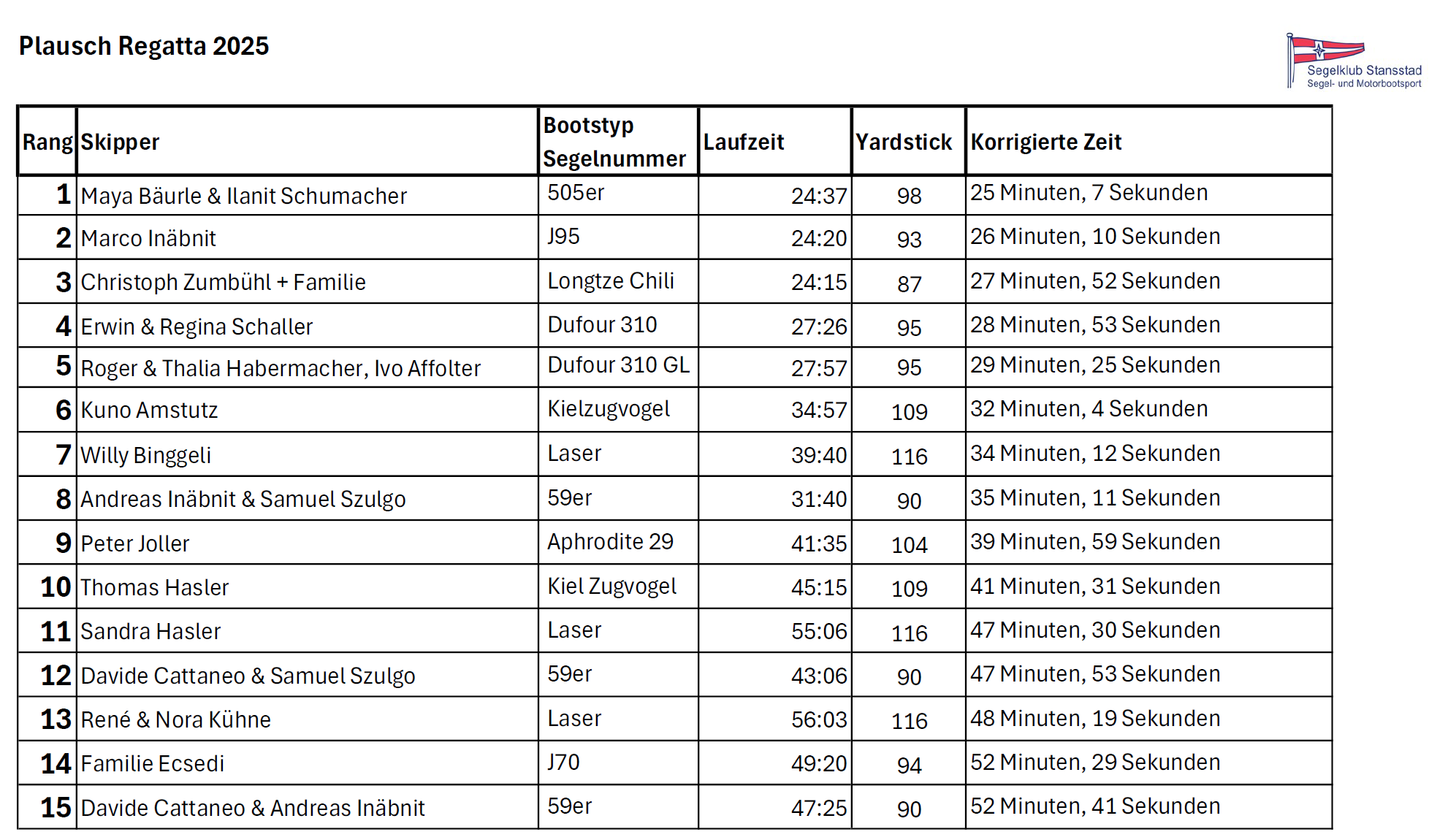 Die schnellste Zeit gewann, und so stand nach einem herrlichen Sommertag die Rangliste wie folgt fest: